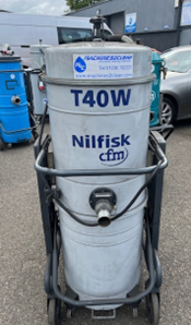 HIRE Nilfisk T40 industrial vacuum hoover appliance textile manufacturing process hygiene, cleaning wet or dry materials dusts and dirt.