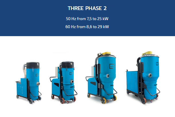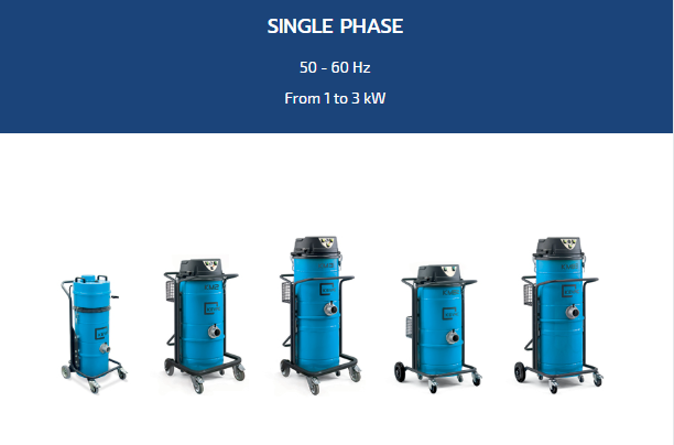 New to our Blue Line range is our KMS1M 5L unit set for dust/dry debris only. Our Blue Line continues with a huge variety of industrial vacuums suitable for a lot of applications in any type of industry, single phase vacuum units, suitable for vacuuming hoovering both light, fine, clogging dust, plus also, swarf and coolants, while the three phase vacuums are effective for heavy duty industrial vacuuming wet and dry materials.