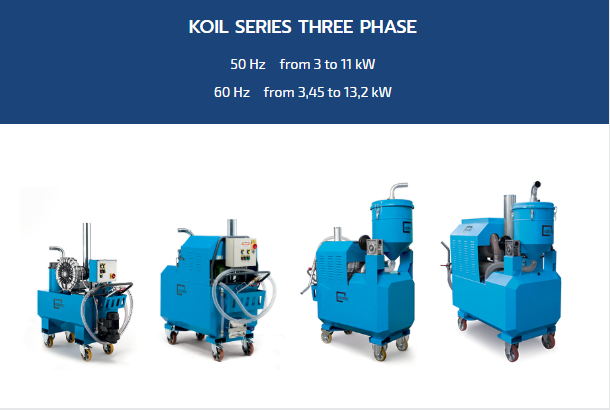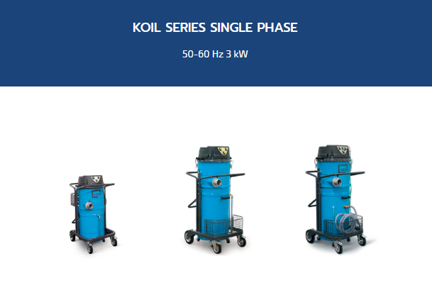Our KOIL series machines, available with single phase or three phase vacuum units, are specific industrial vacuum cleaners for the removal of coolant, oil and swarf from metalwork machine tool sumps.